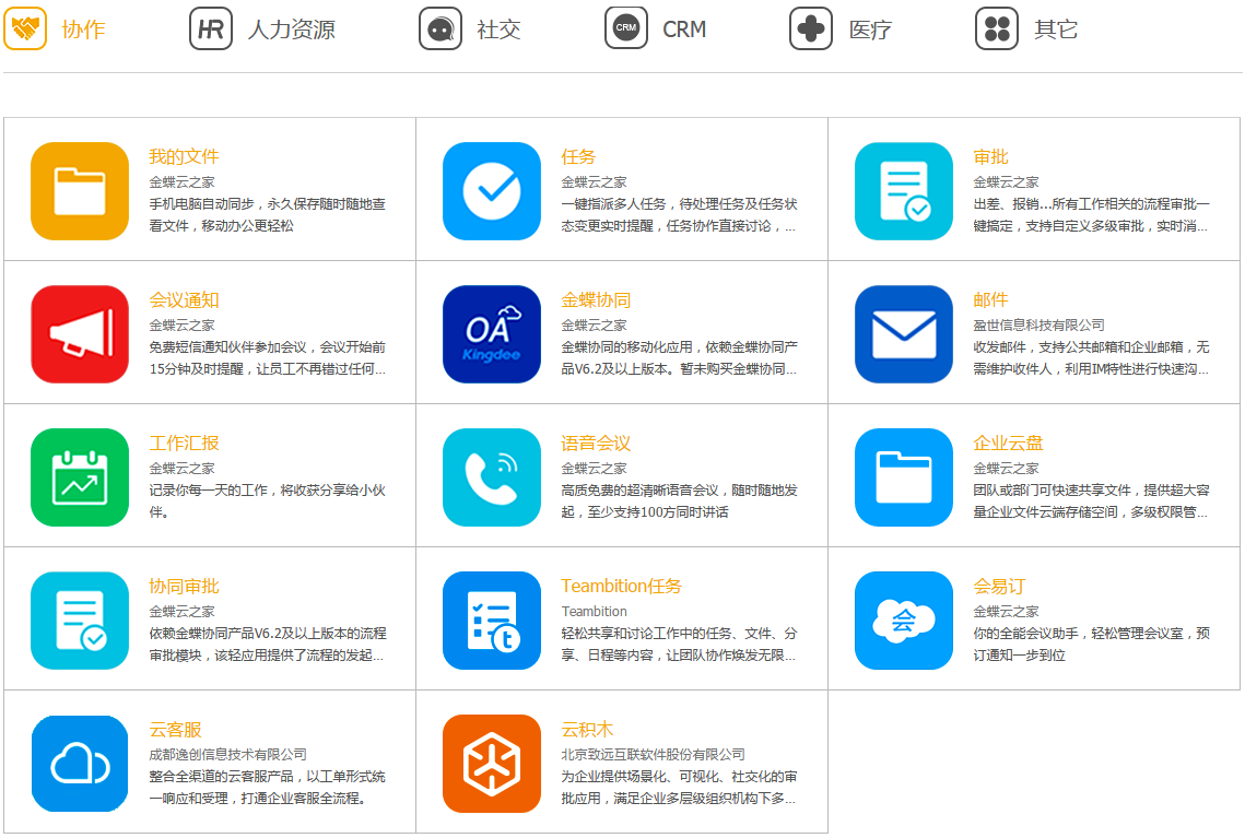 云之家產(chǎn)品以組織、消息、社交為核心,通過應(yīng)用中心接入第三方合作伙伴,向企業(yè)與用戶提供豐富的移動辦公應(yīng)用,同時可連接企業(yè)現(xiàn)有業(yè)務(wù)(ERP),幫助企業(yè)/團(tuán)隊(duì)打破部門與地域限制,提高溝通與協(xié)作效率,幫助中國企業(yè)快速實(shí)現(xiàn)移動化轉(zhuǎn)型,知名用戶包括萬科、海爾、樂視、韓束等。